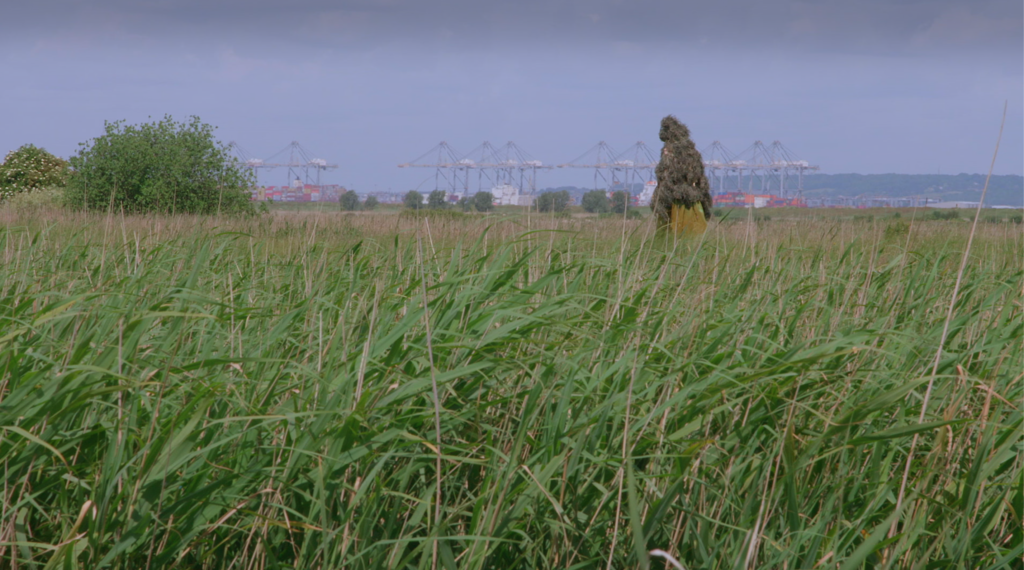 For a time, that was all I had to do but Anna went ahead and the video was shown as part of her Decoywoman exhibition at Zandra Rhodes Gallery, University for the Creative Arts, Rochester. Anna said, ‘Decoywoman investigates the remains of Decoy Pond, a post-medieval earthwork used to lure and trap wildfowl on Halstow Marshes, High Halstow, in North Kent. In character as Decoywoman, Anna Falcini reimagines the traditional role of the decoy man who maintained and managed the decoy pond’.