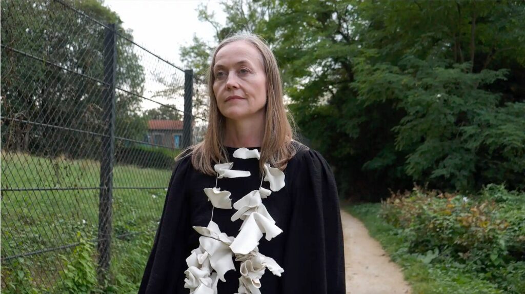 Artist, Anna Falcini, commissioned Rick Goldsmith from Catcher Media to create a film from a performance piece. They have worked together previously but Methods to Speak was a site specific, performance work to be filmed as it happened at the boundary of La Villa des Brillants, Meudon, Paris. The house was formerly the private house and atelier of the sculptor Auguste Rodin (1840 -1917), and is now a museum. The durational performance saw Falcini continuously circumambulating the perimeter of the house and garden for two hours, a gesture of memory that re-imagines the experiences of Welsh artist Gwen John (1876-1939) who did the same in the hope of meeting her lover, Rodin. Although John was never permitted to enter Rodin’s villa, her letters reveal her fantasies of seeing Rodin from a distance, in his garden or meeting him by chance at the gate. In the performance, Falcini wears a porcelain garland which is a reworking of an original garland of ivy that Rodin had created for his Whistler’s Muse sculpture for which Gwen John had modelled.