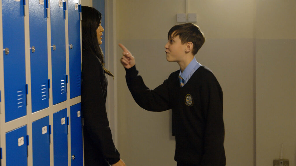 In a light touch way that translates well to the target age group (12-16 years of age), while not pulling any punches, the film showcases the spiralling circumstances that can lead to verbal and physical harassment, as well as physical and cyber-stalking. Importantly, especially in the school setting, it shows that personal and group responsibility have a vital part to play in nurturing healthy masculinity. We see how people around the two central characters – friends, teachers, older siblings, step-father – affect their decision-making.